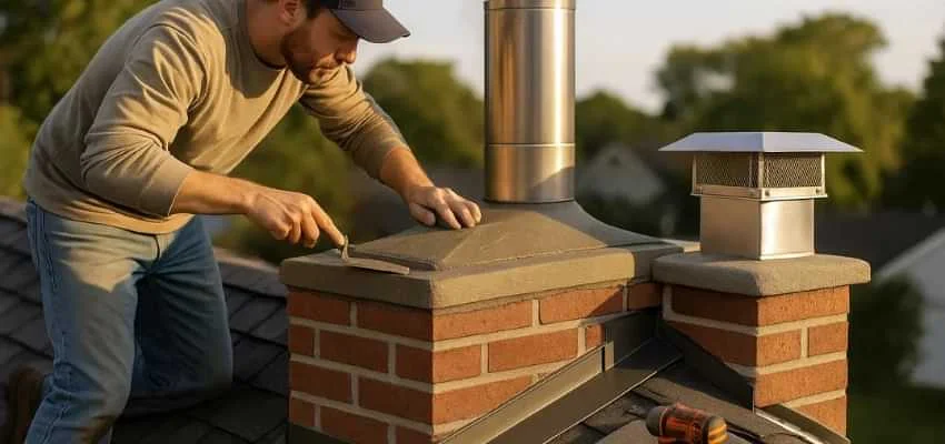 A proper crown protects the top courses. We form a reinforced, sloped crown with a drip edge and an expansion gap around the flue tile, preventing saturation and freeze damage in Georgina.